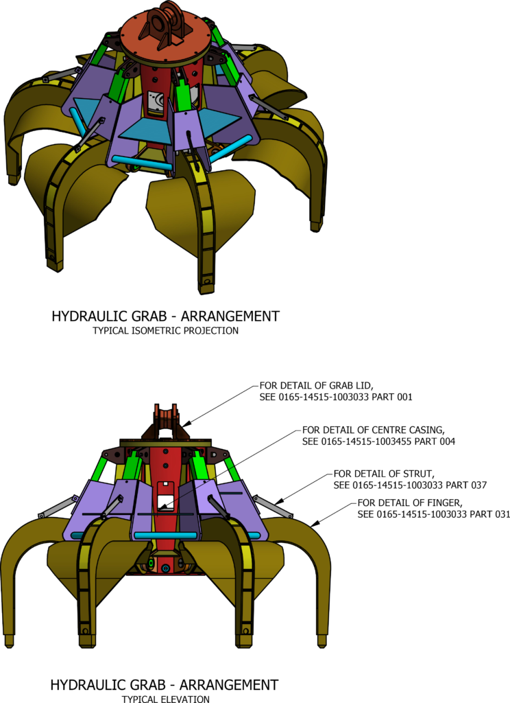 Project Objective Duplicate and improve existing Hydraulic Grab. Project Design Requirements All mechanical items to be reviewed and revised according to statutory requirements. Redesign grab fingers to improve load security.